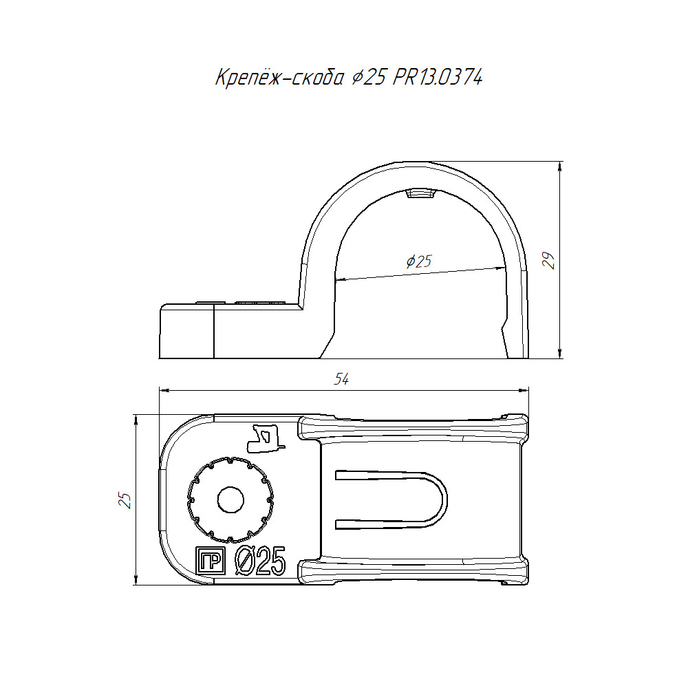 Крепеж-скоба пластиковая односторонняя для прямого монтажа атмосферостойкая черная в п/э d25 мм (50шт/450шт уп/кор) Промрукав